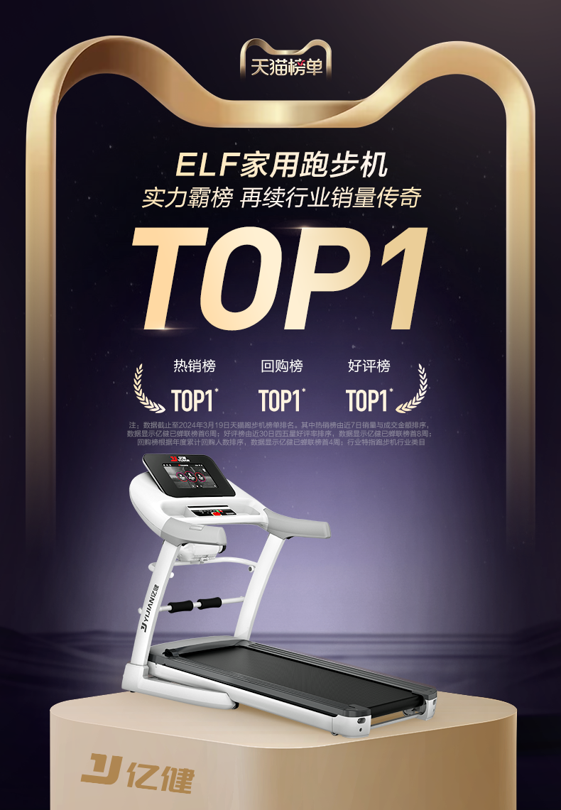 对于亿健精灵ELF这款跑步机来说,推荐的理由非常简单粗暴——大众选择,口碑良心,热销30万台,双11当天成交23424台,单凭这些就已经足够让人下定决心入手了。当然,它能获得这样好的成绩,受到这么多人的肯定,自身出色的强力电机、柔性减震、智能AI和阿里云智能健康管家等多种设计与功能,是必不可少的基础。