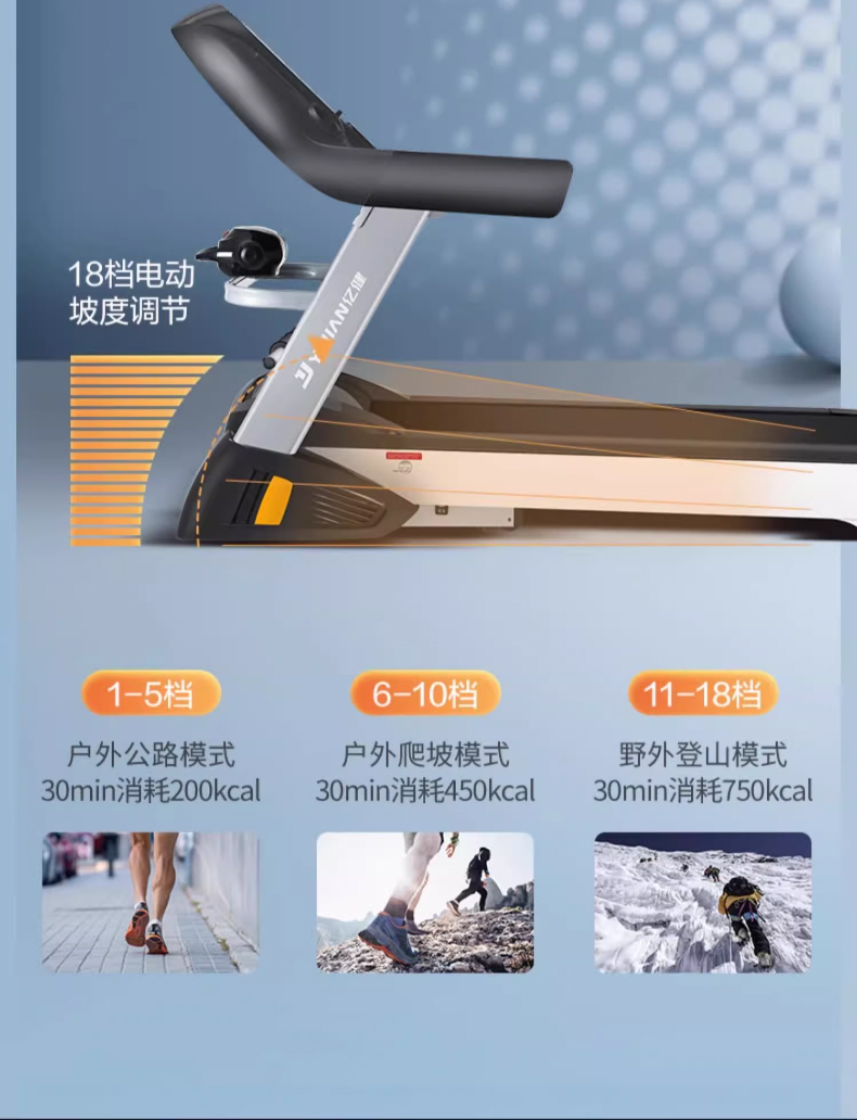 A5是一款非常注重跑步体验的超硬核健身房式跑步机。640MM超宽跑台,18档电动扬升坡度,3.5HP核心高性能高稳定高静音的三高电机,亿健六级横向减震系统,260斤超强承重,15.6英寸前端高清大屏等等豪华大气的配置,让它在时下智能机大热的时候,依旧备受许多健身瘦身达人的喜爱。