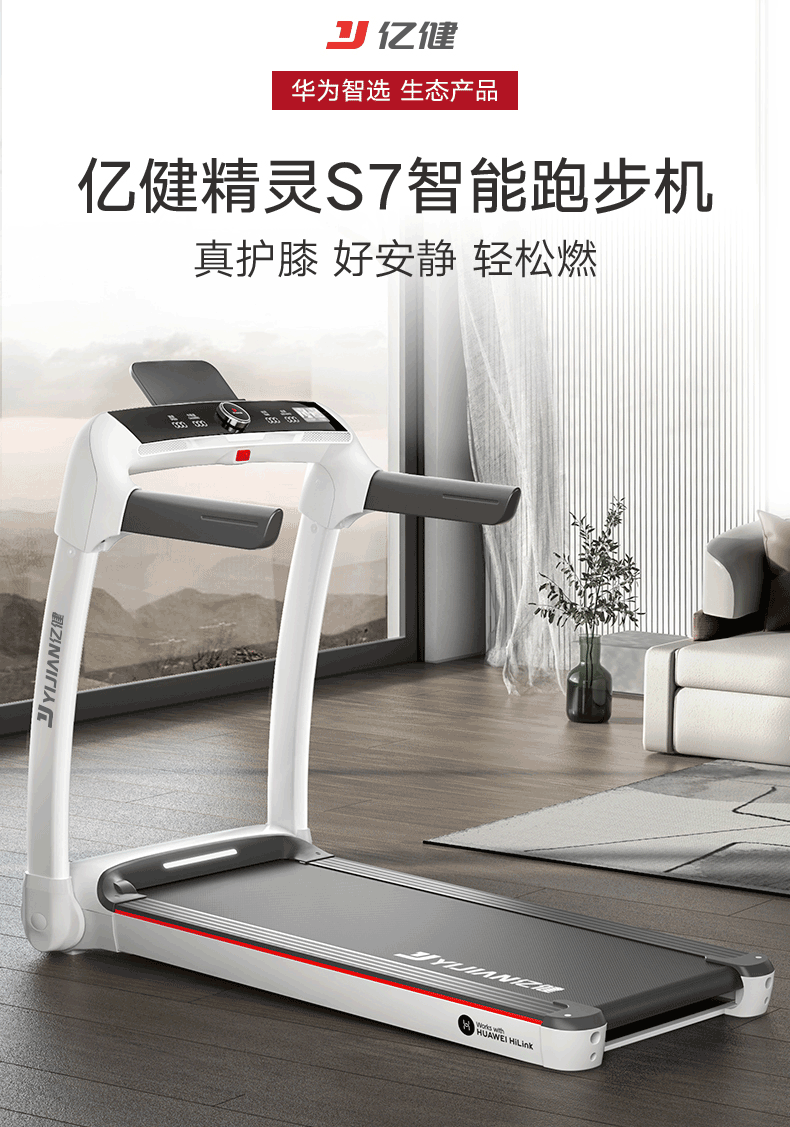 作为全新的家用智能跑步机,亿健精灵S7除了拥有更为先进的智能操控系统,以及亿健跑步机一贯以来的强力静音节能马达和完善的安保系统之外,还实现了与华为智能设备的一碰联功能,最大程度提升了用户的运动体验。在减震方面,精灵S7同样表现出色:应用亿健的AI柔性减震,看得见看得见的回弹,护膝真实力。外观上,精灵S7整体结构轻便且稳定,加以灰白轻奢配色,更像是融入家庭的健康好物。